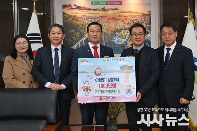 [시사뉴스 장시목 기자](사)계명1%사랑나누기(대표: 신일희)는 지난 11월 28일, 대구 남구에 이웃돕기 성금 1천만원을 기탁했다.