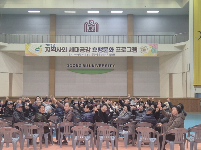 [시사뉴스 고재섭 기자] 금산군 추부면에 소재한 중부대는 지난 5일 대학교 범농관에서 지역 어르신과 주민, 대학 구성원 등이 참여한 가운데 2025년 지역사회 세대공감 효행(孝行)문화 행사를 성황리에 개최했다.