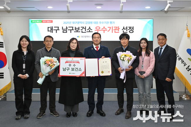 [시사뉴스 장시목 기자]대구 남구(구청장 조재구)는 대구시 주관 감염병 대응 평가에서 우수한 성과를 인정받아 ‘2025년 감염병 대응 우수기관’으로 선정됐다고 밝혔다.