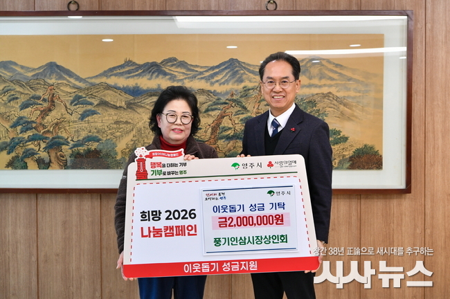 [시사뉴스 장시목 기자]영주시는 지난 14일, 풍기인삼시장상인회(회장 김점순)가 영주시청을 방문해 희망2026 나눔캠페인 이웃돕기 성금 200만 원을 기탁했다고 밝혔다.