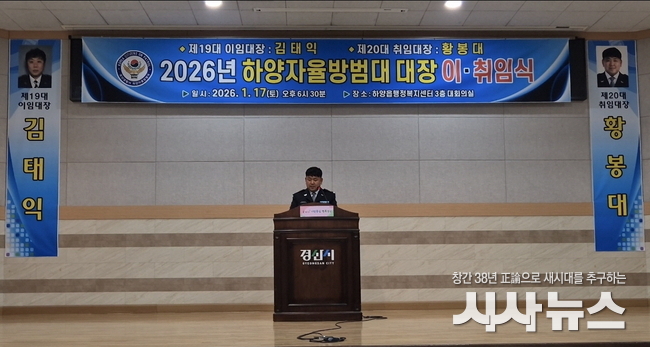 [시사뉴스 장시목 기자]경산시 하양자율방범대(신임 대장 황봉대)는 17일 하양읍 행정복지센터 3층 대강당에서 2026년 대장단 이·취임식을 개최했다.