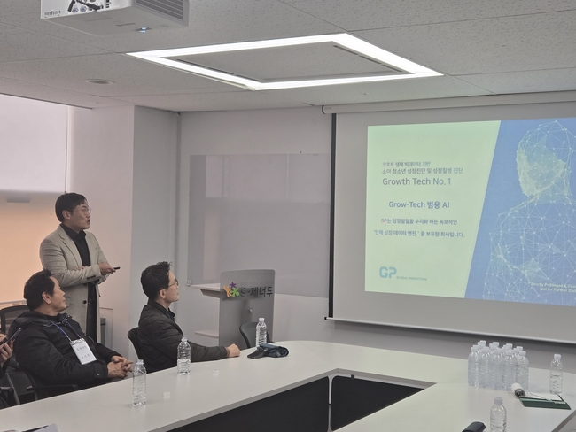 제2주제 발표에 나선 성제혁 지피 대표는 아동 청소년의 성장 데이터를 기반으로 성장 기술 사업을 추진하고 있는 ㈜GP 회사의 비전과 성장 과정을 설명했다. 성 대표는 "현재 ㈜GP는 14년간 15만 명의 아동 청소년의 시계열 데이터를 수집하여 성장 발달을 수치화하는 AI 엔진을 보유하고 있으며, 이 기술은 성장판 검사를 대체할 수 있으며, 의료, 공공기관, 제약 회사 등 다양한 분야에 활용될 수 있다”고 밝혔다.