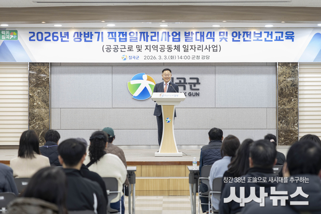 [시사뉴스 이성동 기자] 칠곡군은 지난 3월 3일 군청 강당에서 ‘2026년 상반기 직접일자리사업’ 발대식을 진행하고 안전보건교육을 실시했다.