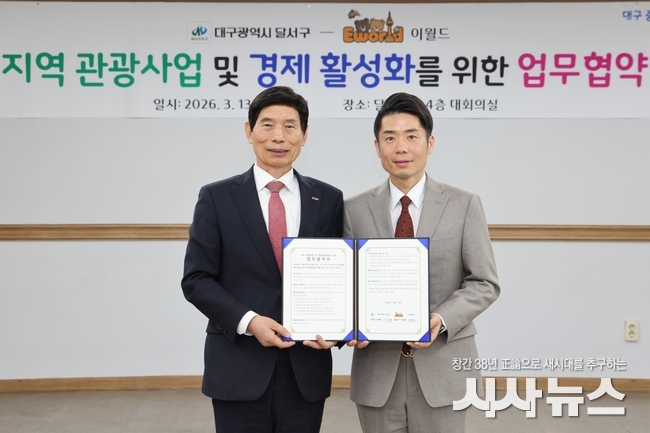 [시사뉴스 장시목 기자]대구 달서구(구청장 이태훈)는 지역 관광산업 활성화와 관광객 유치 확대를 위해 13일 구청 회의실에서 이월드와 업무협약(MOU)을 체결했다.