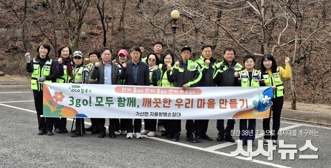 [시사뉴스 이성동 기자] 지난 25일 가산면 자율방범순찰대(회장 경영미)는 오는 3월 28일 팔공산금화자연휴양림 일대에서 개최 예정인 칠곡군민 건강걷기대회를 앞두고 지역 환경 정비를 위한 ‘3go! 운동 환경정화활동’을 실시했다.