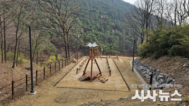 ○ 이번 정비로 짚라인, 건너기 놀이대, 그네 등 숲 놀이터가 새로 조성됐으며, 목계단, 휀스, 안내판 등이 설치돼 숲길 이용 편의를 크게 높였다.