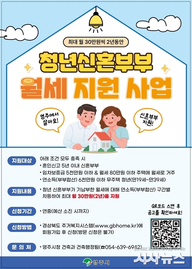 [시사뉴스 장시목 기자]영주시는 청년 신혼부부의 주거비 부담을 완화하기 위해 시행 중인 「청년 신혼부부 월세 지원사업」을 보다 널리 알리고자 홍보자료를 배부하는 등 적극적인 안내와 홍보를 추진하고 있다고 밝혔다.