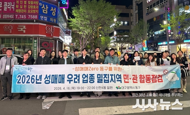 [시사뉴스 이성동 기자] 대구 동구청은 지난 16일, 신천동 동대구복합환승센터 일대에서 성매매 우려 업소를 대상으로 민·관 합동 야간 점검과 홍보 캠페인을 실시했다.