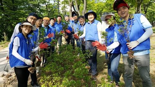 23일 삼성물산에 따르면 지난 20일 경기도 분당 화랑공원에서 약 1200그루의영산홍 나무를 심어 미니 꽃동산을 조성했음. 쓰레기를 줍고, 잡초를 제거하고 해묵은 낙엽들을 모두 걷어내는 등 주변 환경 정화도 함께 실시했다고 밝혔다.