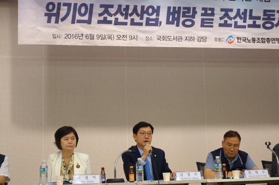 김 의원은 서울 여의도 국회도서관에서 열린 ‘위기의 조선 산업, 벼랑 끝 조선노동자, 올바른 해법은 무엇인가?’ 토론회에 참석해 “조선 산업이 국민들에게 곧 망할 것 같은 사업처럼 과장되어 있다”며 이같이 밝혔다.