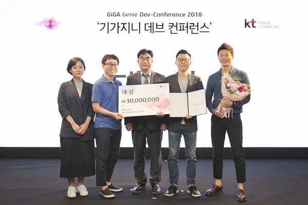이번 공모전은 생활에 편리함과 즐거움을 줄 수 있는 창의적인 기가지니 신규서비스 개발을 주제로 총 10주간 진행됐다. KT 직원들이 멘토링을 진행해 AI 서비스 개발의 노하우를 전수하고 완성도를 높였다.