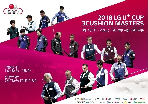 ‘2018 LG U+컵 3쿠션 마스터스’는 2015년부터 LG유플러스가 후원하고 대한당구연맹이 주최하는 공인된 국제대회다. 세계캐롬당구연맹(UMB)의 정식 승인으로 세계 최정상급 선수들이 한데 모이는 자리이기도 하다.