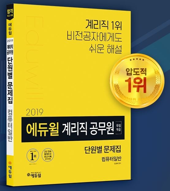 [시사뉴스 윤호영 기자] 종합교육기업 에듀윌(대표 박명규)의 ‘2019 에듀윌 우정9급 계리직공무원 단원별 문제집 컴퓨터일반’이 온라인서점 YES24 기능직 10급 컴퓨터 부문 9월 2주차 베스트셀러 1위를 차지했다.