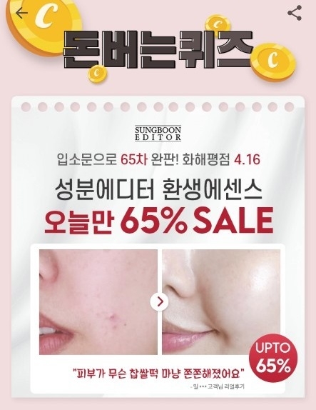 이번 캐시워크 돈버는 퀴즈는 '성분에디터 환생에센스'에 대한 문제다.