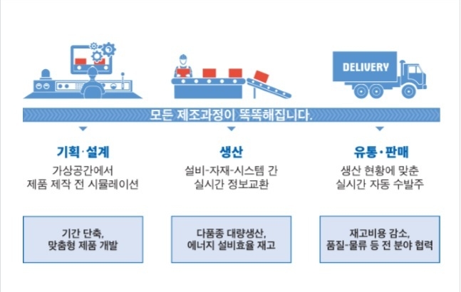 스마트공장이란 MES, SCM, SPC 등 시스템 도입으로 제품의 기획·설계·생산·유통·판매 등 전 과정을 ICT기술로 연결하는 미래형 공장이다. 스마트공장 구축으로 데이터를 실시간 수집·분석하고 최소비용·근로시간 단축 등을 통해 더욱 효율적인 생산이 가능하게 된다.