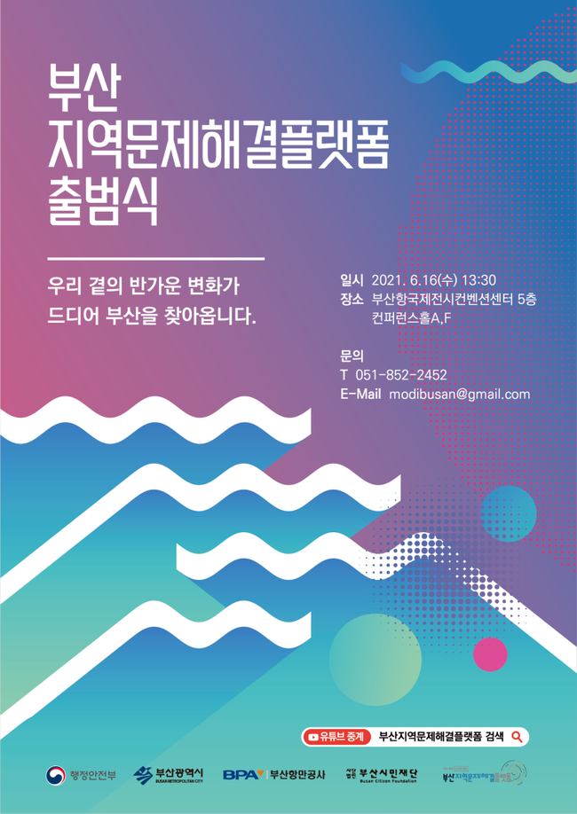 BPA는 16일 오후 1시 30분 부산항국제전시컨벤션센터 5층 컨퍼런스홀에서 부산광역시, 부산시민재단 등과 함께 '부산지역문제해결플랫폼' 출범식을 연다고 밝혔다.