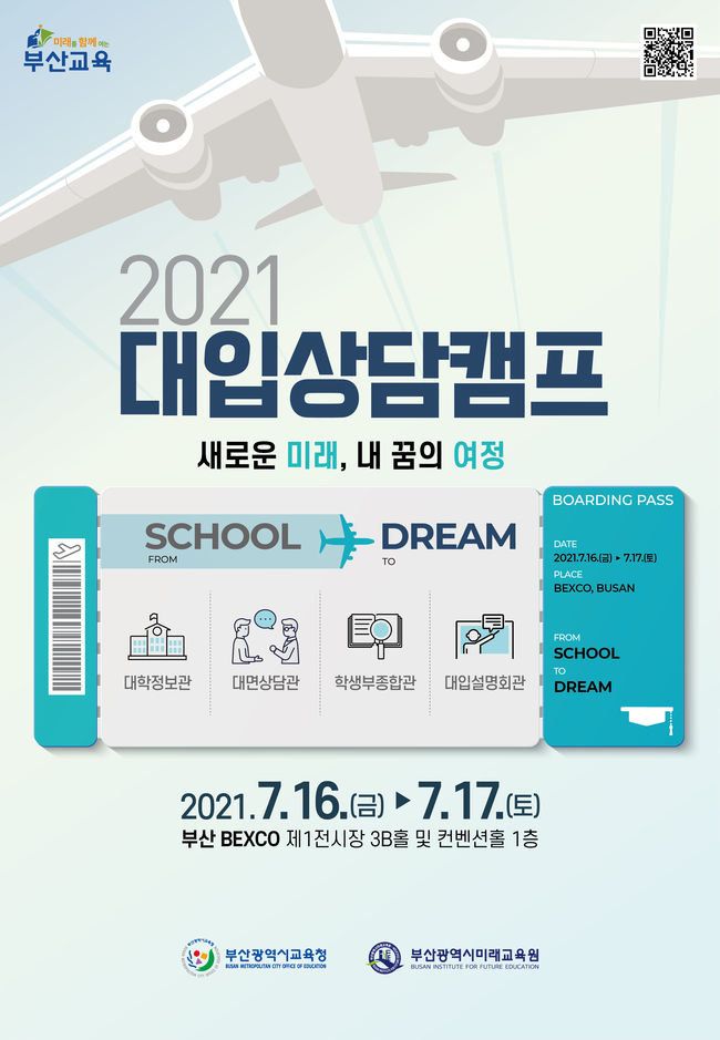 [시사뉴스 정윤철 기자] 부산광역시교육청(교육감 김석준)은 오는 7월 16일 오후 2시 해운대구 벡스코에서 학생과 학부모 등이 참석한 가운데‘새로운 미래, 내 꿈의 여정’이라는 슬로건으로‘2021 대입상담캠프’개막식을 갖고 17일까지 이틀간 행사에 들어간다.