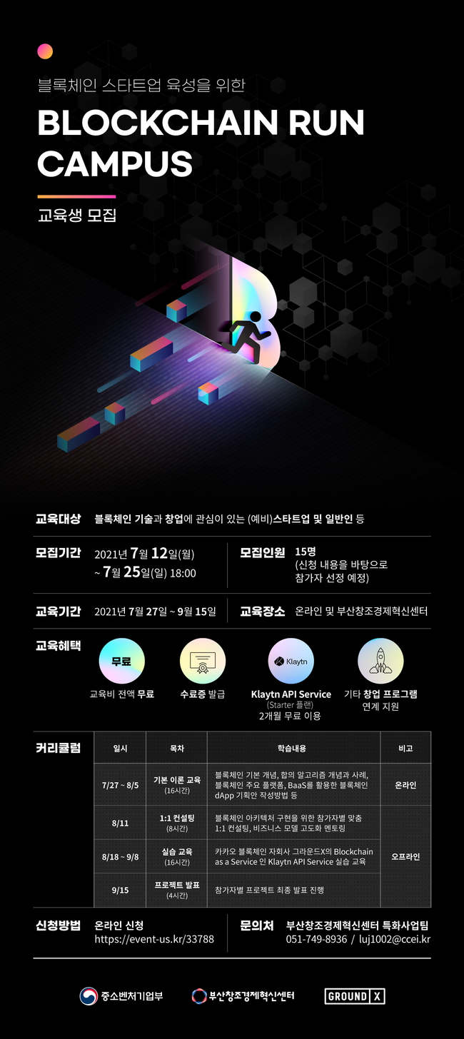 특히, 이번 교육 프로그램의 경우 카카오의 블록체인 기술 계열사인 그라운드X와 함께하며 그라운드X의 Blokcchain as a Service인 'KAS'(Klaytn API Service) 실습교육도 적극 돕는다.