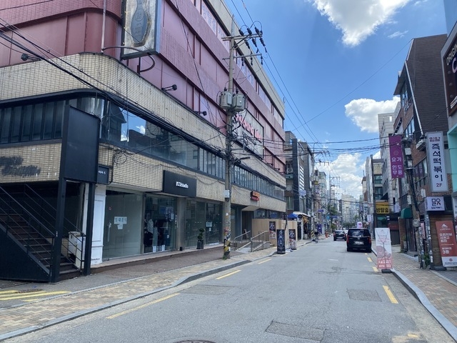 의류, 악세사리, 가방가게 등이 즐비한 어울마당로도 걸어다니는 사람이 없이 한산하기는 마찬가지였다. 무더운 날씨에도 입구까지 나와 호객행위를 하는 점원도 있었다. 매장 안에 앉아 있는 상인들은 손님이 별로 없어 대부분 휴대폰을 바라보고 있었다.