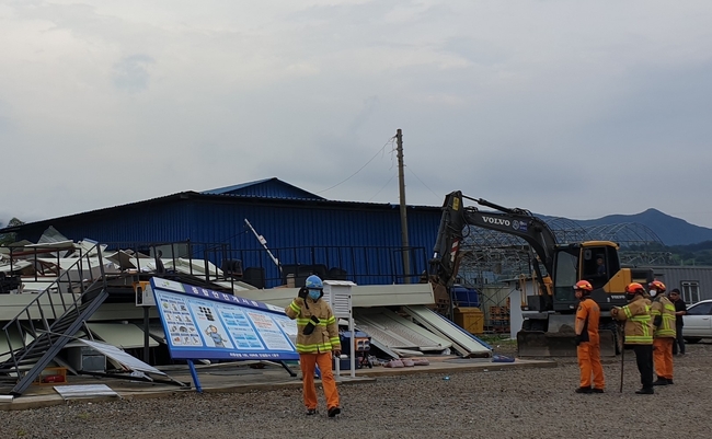 사고 현장에 소방관 13명과 장비 5대가 출동해 넘어진 건물자재를 복구하고 현장 근무자 중 머리와 다리 찰과상 등 부상을 입은 최모(67) 씨 등 3명을 현장 응급처치해 인근 병원으로 신속하게 이송했다.
