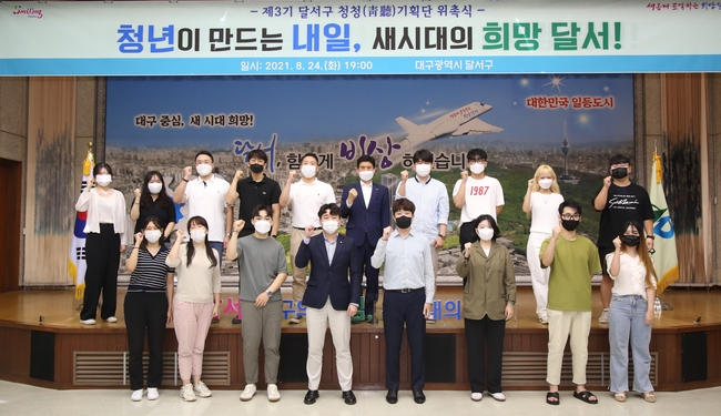 [시사뉴스 강준민 기자] 대구 달서구(구청장 이태훈)는 지난 24일 2층 대강당에서 지역청년들이 청년 문제를 직접 함께 고민하며 청년사업을 발굴․제안하는 소통창구로서의 역할을 하는 청년네트워크인 '제3기 달서구 청청기획단 위촉식'을 가졌다고 밝혔다.