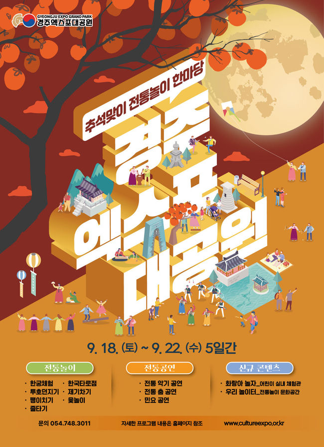 [시사뉴스 정윤철 기자] 경주엑스포대공원이 공연과 전통놀이 체험 등 추석연휴 기간 지역민을 위한 특별체험 행사를 운영한다.