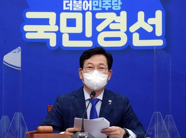 언론중재법 개정안과 관련해선 "최선을 다해서 합의를 하되 합의가 안 되면 표결처리하는 게 민주주의 원리"라며 " 일부 언론에서 단독처리란 표현을 쓰는데 적절치 않다고 본다. 국회가 논의해서 합의가 안되면 안건을 상정해서 표결 처리하는 것을 단독처리라 할 수 있느냐"면서 강행을 시사했다.