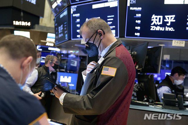 이날 뉴욕증권거래소(NYSE)에서 다우존스 30 산업평균지수는 전장보다 534.75포인트(1.56%) 오른 3만4912.56으로 장을 마감했다.