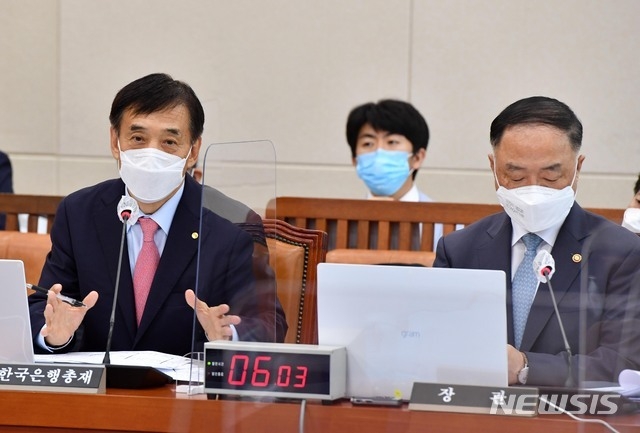 최근 급증하고 있는 가계부채가 실물경제에 부담으로 작용할 위험이 있는 만큼 가계부채 문제에 대해서도 질의가 나올 것으로 예상된다. 한은에 따르면 올 2분기 말 가계 빚은 전분기 대비 41조2000억 늘어난 1805조9000억원으로 2003년 관련 통계 작성 이래 가장 많았다. 가계 빚 증가 속도도 빨라지고 있다. 1년 전과 비교하면 168조6000억 늘어 사상 최대 증가폭을 기록했다. 한은은 저금리로 늘어난 부채가 부동산, 주식 등 자산시장으로 유입돼 부동산 가격이 급등하면서 실물경제와 격차가 커지는 '금융불균형'이 심각한 수준이라고 보고, 이에 따라 통화정책과 거시건전성 정책 등 주택관련 정책을 함께 추진해야 한다고 보고 있다.