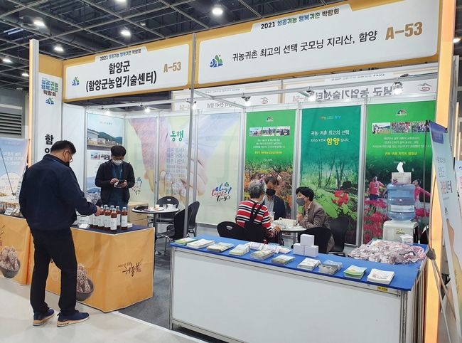 [시사뉴스 정윤철 기자] 함양군은 29일부터 31일까지 3일간 서울 양재동 aT센터에서 개최된 ‘2021 성공귀농 행복귀촌 박람회’에 참가해 함양의 농특산물과 귀농귀촌 관련 홍보활동을 펼쳤다.