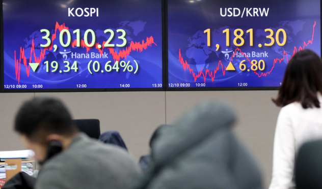 10일 코스피는 전 거래일(3029.57)보다 19.34포인트(0.64%) 내린 3010.23에 장을 닫았다. 지수는 전일 대비 0.69% 내린 3008.70에 출발해 장중 낙폭을 유지하며 거래를 마쳤다.