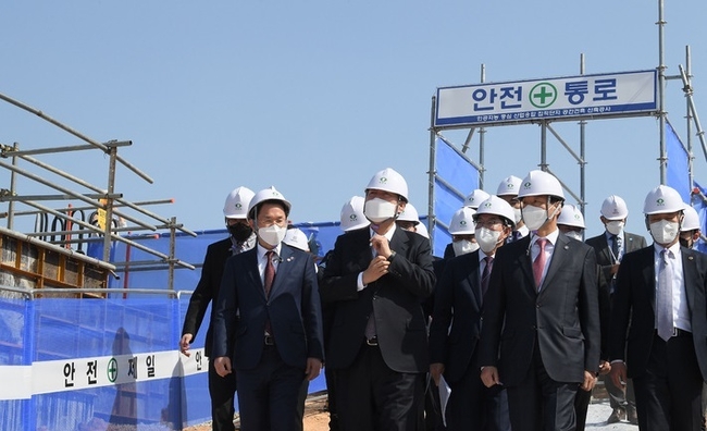 윤 당선인은 헬멧을 착용한 채 공사현장을 둘러보고 "건물은 내년이면 거의 (완공)되겠다"며 "건물이 중요한 게 아니고 안에 클라우드 (구축에) 조 단위의 돈이 들어가는데 그걸 해야된다는 (설명)"이라며 웃어보였다.