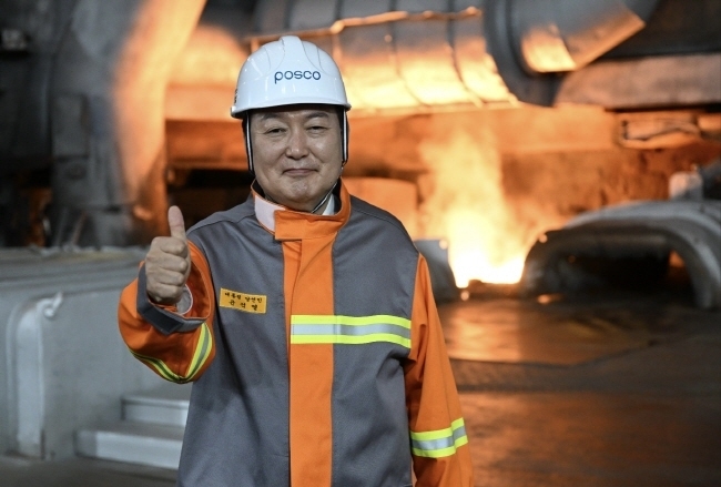 [시사뉴스 홍경의 기자] 윤석열 대통령 당선인이 세계 최대 규모의 포스코 광양제철소를 방문했다.