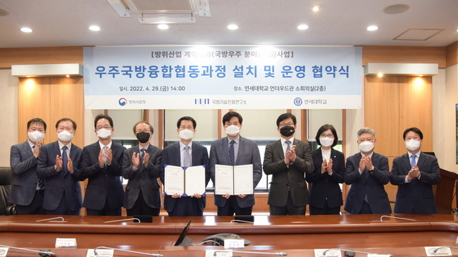 국방기술진흥연구소(국기연)는 연세대, 세종대, 한밭대와 국방 우주(위성 포함) 분야 전문 인력 양성을 위한 '방위산업 계약학과' 설치 및 운영 협약을 체결했다고 29일 밝혔다.