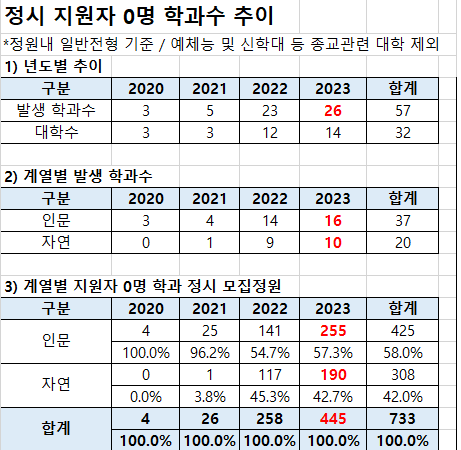 임성호 종로학원 대표는 “정시 지원자 자체가 아예 없는 학과들은 기대 이상으로 빠르게 늘어날 수 있는 상황”이라며 “정부나 대학 당국의 대응책이 적극적으로 발표되는 것과 달리 현실적인 정책 효과가 작동하지 않는 것으로 볼 수 있다”고 지적했다.