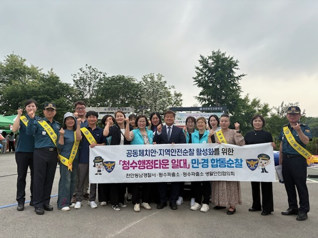 [시사뉴스 이용만 기자] 천안동남경찰서 청수파출소(소장 문정표)·원성파출소(소장 윤정원)는, ’25년 5월 15일 오후 5시부터 4시간 동안 관내 천안여자고등학교에서 청수·원성파출소장(공동체), 지역경찰과 시민경찰위원회 등 4개 협력단체 40여명이 참여해 축제장 범죄·안전사고 대비 민·경·학 합동 공동체 치안활동을 펼쳤다.