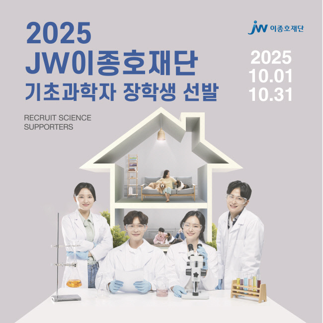 [시사뉴스 홍경의 기자] JW중외제약의 공익재단인 JW이종호재단은 기초과학 분야 연구자들의 안정적인 연구 환경 조성을 위해 ‘2025 기초과학자 장학생’을 오는 31일까지 모집한다고 1일 밝혔다.