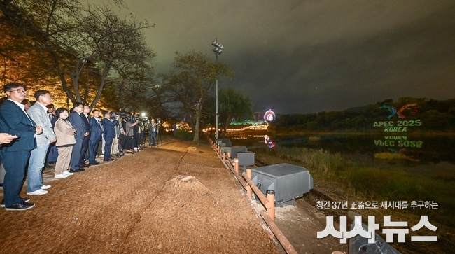 [시사뉴스 하정수 기자] 경상북도와 경주시는 15일 저녁, 보문관광단지 육부촌과 호반 광장 일원에서 이철우 도지사, 주낙영 경주시장 등 주요 내빈과 시민 100여 명이 참석한 가운데, APEC 보문단지 야간경관 개선사업 '빛의 향연' 시연회를 개최했다.