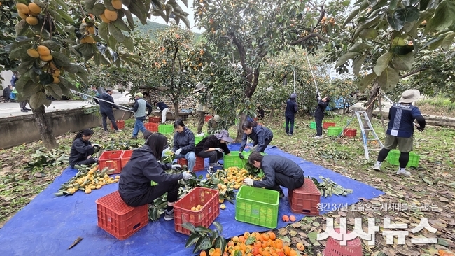 이날 20여명의 직원들은 운문면 방지리 농가를 방문해 청도의 대표 농산물인 반시 수확과 감꼭지 따기, 수확물 정리 등을 함께 진행하며 구슬땀을 흘렸다.