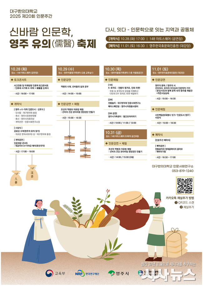 [시사뉴스 장시목 기자]영주시는 대구한의대학교와 함께 「2025 인문도시 지원사업」의 일환으로 인문주간 축제 ‘신바람 인문학, 영주 유의(儒醫)’를 개최한다.