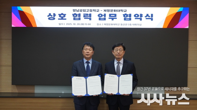 [시사뉴스 장시목 기자]계명문화대학교(총장 박승호)는 10월 28일 대학 동산관 대회의실에서 영남공업고등학교(교장 송우용)와 ‘협약형 특성화고등학교 운영 지원을 위한 업무협약’을 체결하고, 지역산업 맞춤형 인재 양성을 위한 협력체계를 강화하기로 했다.