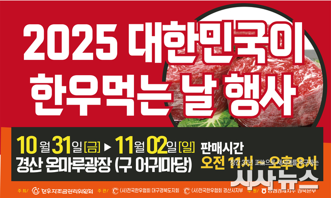 [시사뉴스 장시목 기자]2025년 대한민국이 한우먹는 날 행사가 한우자조금관리위원회 주최, (사)전국한우협회 대구경북도지회 주관으로 10월 31일부터 11월 2일까지 3일간 경산실내체육관 온마루 광장에서 개최된다.