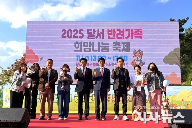 [시사뉴스 장시목 기자]대구 달서구(구청장 이태훈)는 지난 1일 달서 반려견 놀이터(성서공단로 287)에서 열린 ‘2025 달서 반려가족 희망나눔 축제’가 지역 반려가족과 반려견의 뜨거운 참여 속에 성황리에 마무리됐다고 밝혔다.