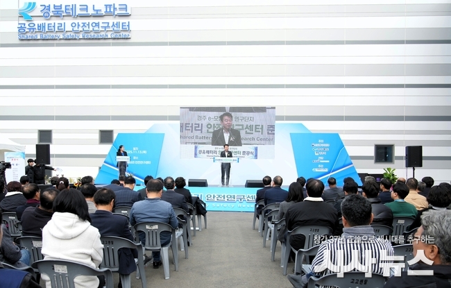 [시사뉴스 하정수 기자] 경주시는 13일 외동읍 구어2산업단지 내 ‘경주 e-모빌리티 연구단지’에서 ‘공유배터리 안전연구센터(이하 센터)’ 준공식을 열고, 국내 배터리 산업을 선도할 핵심 인프라 구축을 기념했다.