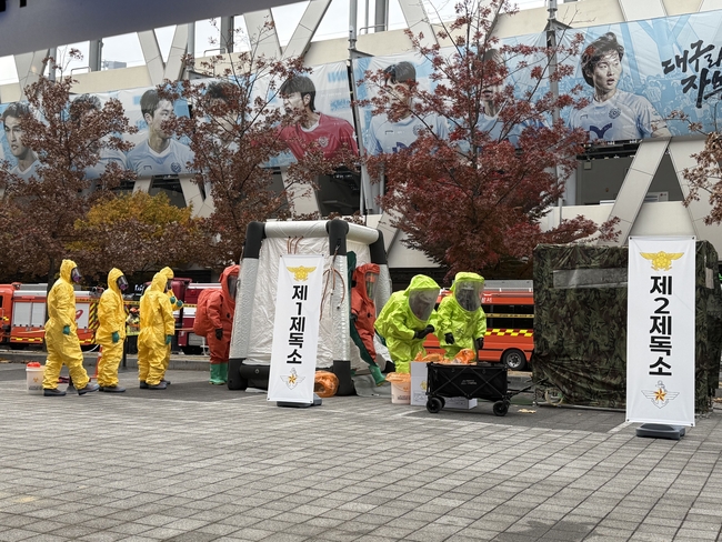 [시사뉴스 이성동 기자] 대구 북구보건소는 11월 12일(수), 대구iM뱅크파크에서 『2025년 생물테러 대비·대응 대규모 현장훈련』을 실시했다.