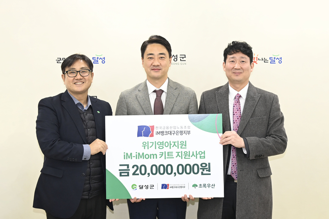 최재훈 달성군수는 “건강한 양육 환경 조성을 위해 뜻깊은 나눔을 해주신 iM뱅크 임직원들께 진심으로 감사드린다”며 “기탁해 주신 물품은 도움이 필요한 곳에 소중히 쓰일 수 있도록 잘 전달하겠다”고 감사의 뜻을 전했다.