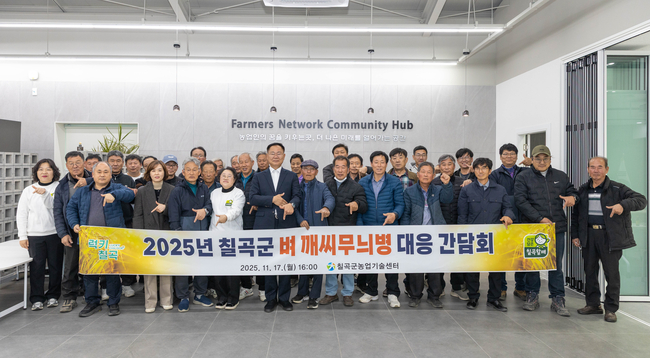 [시사뉴스 이성동 기자] 칠곡군은 11월 17일 농업기술센터 청년농업인지원센터에서 벼 깨씨무늬병 확산에 대응하기 위한 ‘2025년 벼 깨씨무늬병 대응 간담회’를 개최했다.