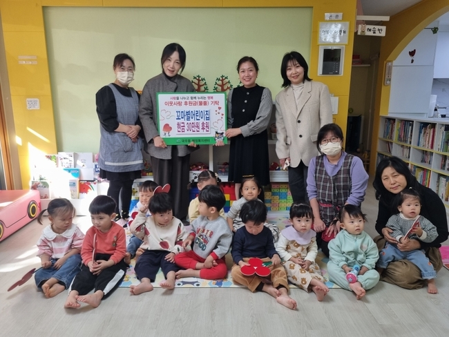 [시사뉴스 이성동 기자] 대구 북구 국우동에 소재한 꼬마별 어린이집(원장 유남순)은 지난 11월 14일(금) 바자회 행사 진행 후, 30만원 상당의 수익금 전액을 국우동행정복지센터(동장 박혜선)에 기탁했다.