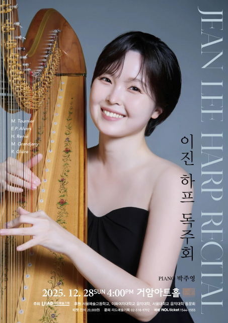 하프의 다양한 표현 세계를 한 무대에서 경험할 수 있는 이진의 독주회는 연말 공연 시즌 속에서도 특별한 울림을 전할 것으로 기대된다. 리드예술기획의 주최로 개최되는 이번 공연의 입장권은 전석 2만원이며, 학생은 50% 할인 혜택을 받을 수 있다. 예매는 NOL Ticket(인터파크)에서 가능하다.