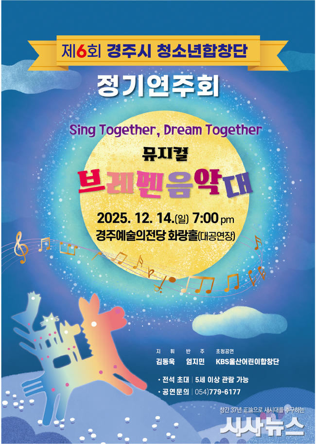 [시사뉴스 하정수 기자] 경주시는 오는 14일 저녁 7시 경주예술의전당 화랑홀에서 ‘제6회 경주시 청소년합창단 정기연주회’를 개최한다.